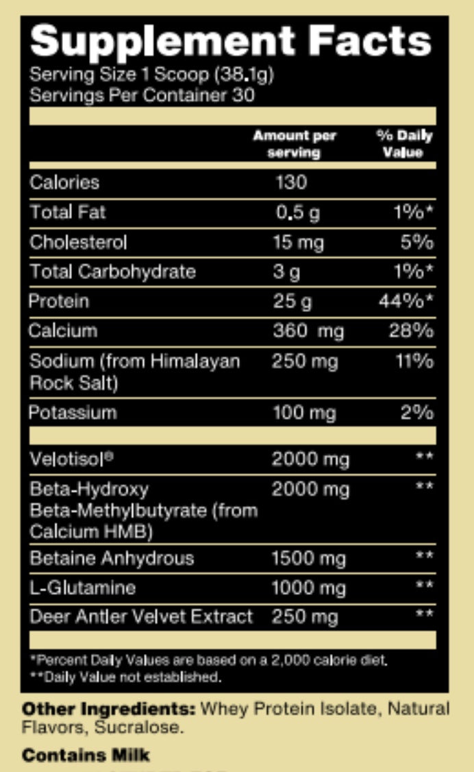 - Beyond Protein: This powerhouse blend combines the muscle-repairing benefits of Whey Protein Isolate with Velositol®—a patented ingredient that enhances muscle protein synthesis—along with essential nutrients like L-Glutamine and Betaine Anhydrous, ensuring you bounce back stronger and faster.