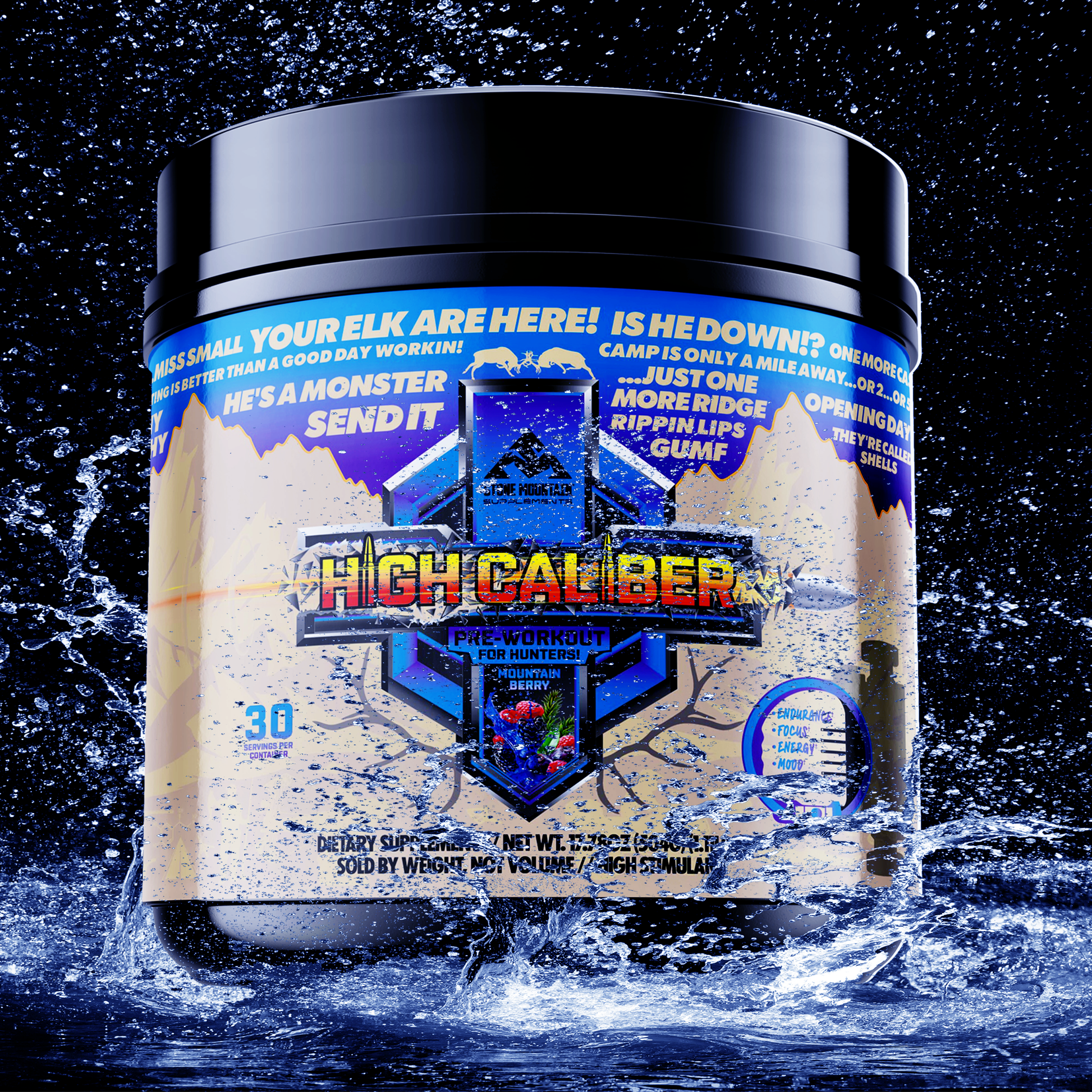 Introducing High Caliber, the ultimate pre-workout formula designed specifically for hunters and outdoor enthusiasts. Whether you’re trekking through rugged terrain, tracking game, or spending long hours in the field, High Caliber provides the sustained energy and focus you need to conquer every challenge.