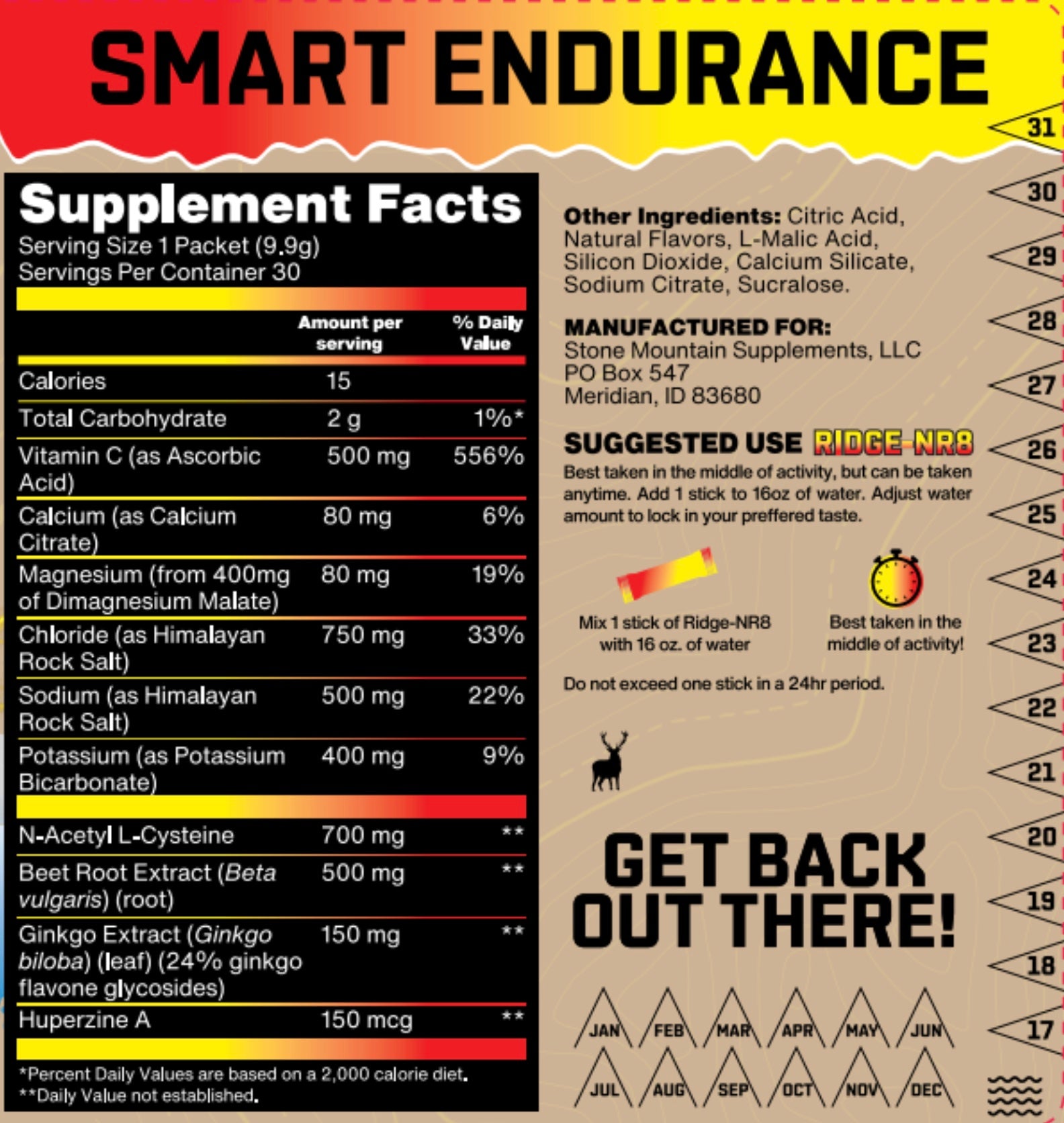 - Breathe Easy, Hunt Hard: Infused with N-Acetyl L-Cysteine (NALC), Ridge-NR8 acts as a respiratory aid, helping you adapt to high elevations. Improve your lung function and oxygen delivery, so you can stay sharp and focused on the hunt.